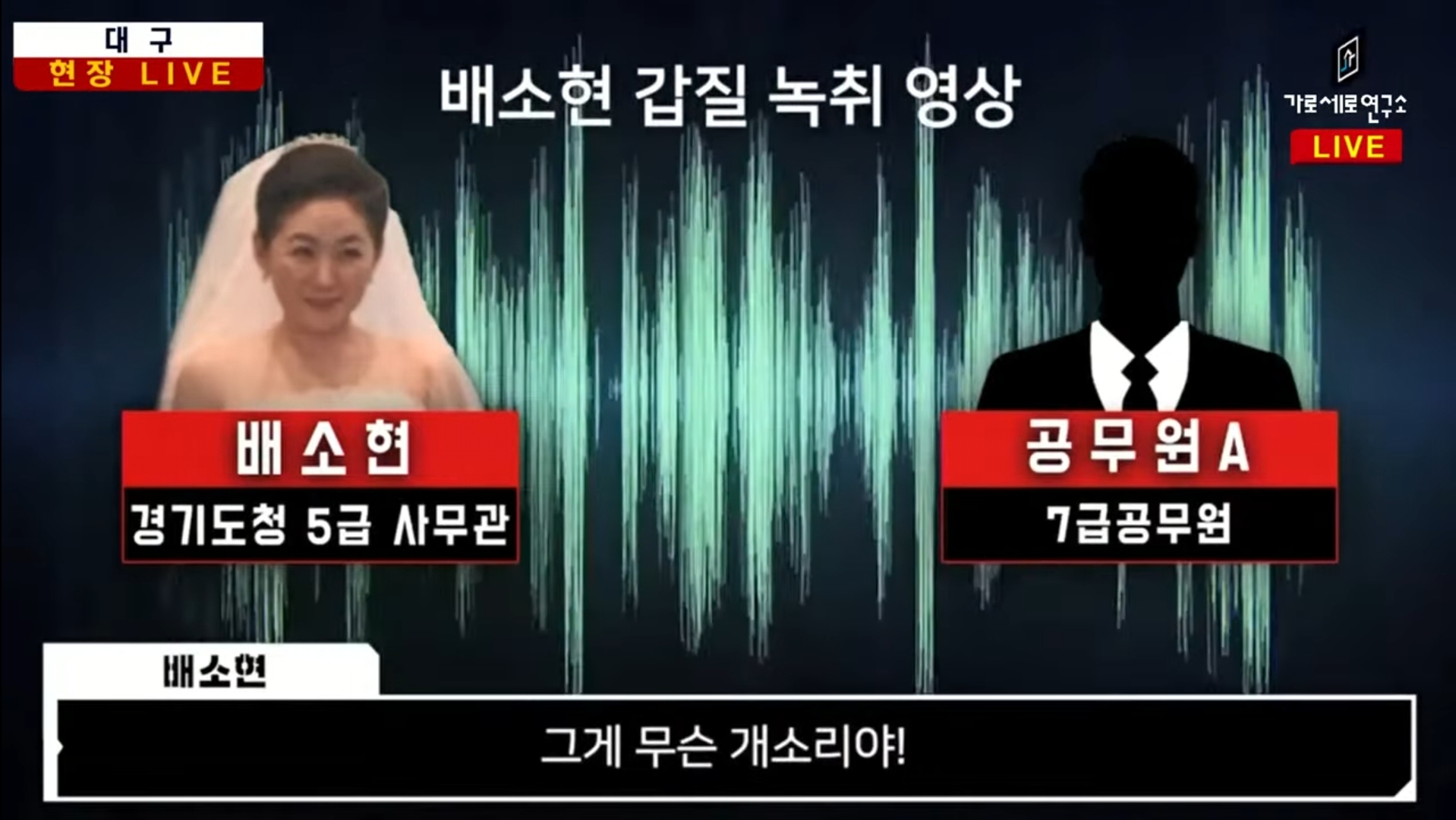 가로세로연구소는 2월 4일 라이브 방송을 통해 이재명 대선 후보의 부인 김혜경씨의 황제의전 논란의 핵심인물로 거론되는 배소현과 7급 공무원 A 씨의 녹취록을 일부 공개했습니다. 배소현은